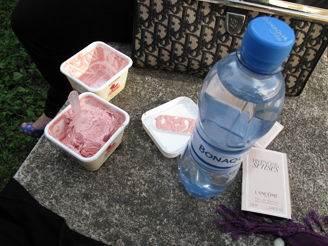 This is what we walked out with: ice cream, bon aqua, chocolate and a sample of hypnose senses -perfume.